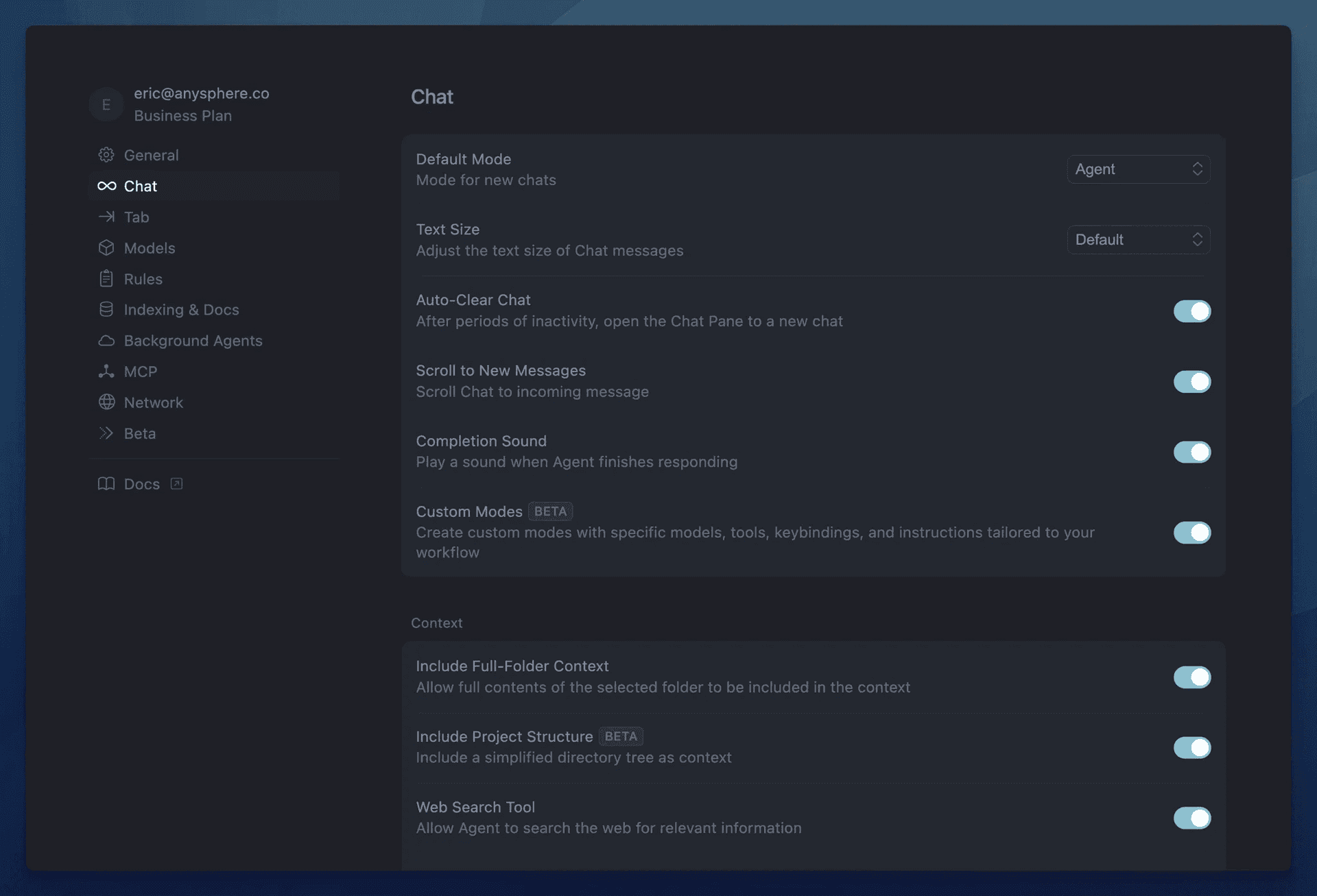 With Memories, Cursor can remember facts from conversations and reference them in the future. Memories are stored per project on an individual level, and can be managed from Settings.