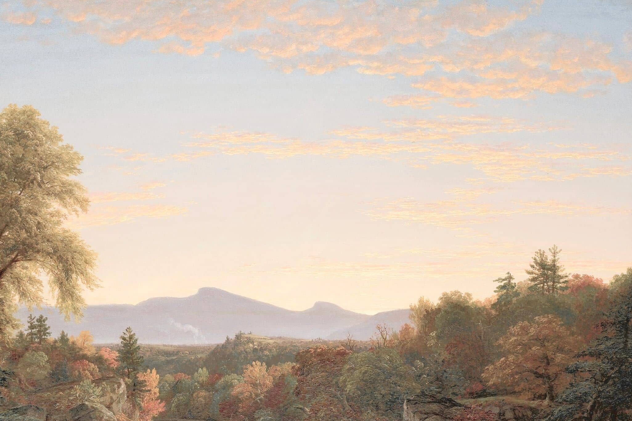 This element contains an interactive demo for sighted users. It's a demonstration of Cursor's CLI showing AI-powered command-line assistance features. The interface is displayed over a scenic painted landscape wallpaper, giving the demo an artistic backdrop.