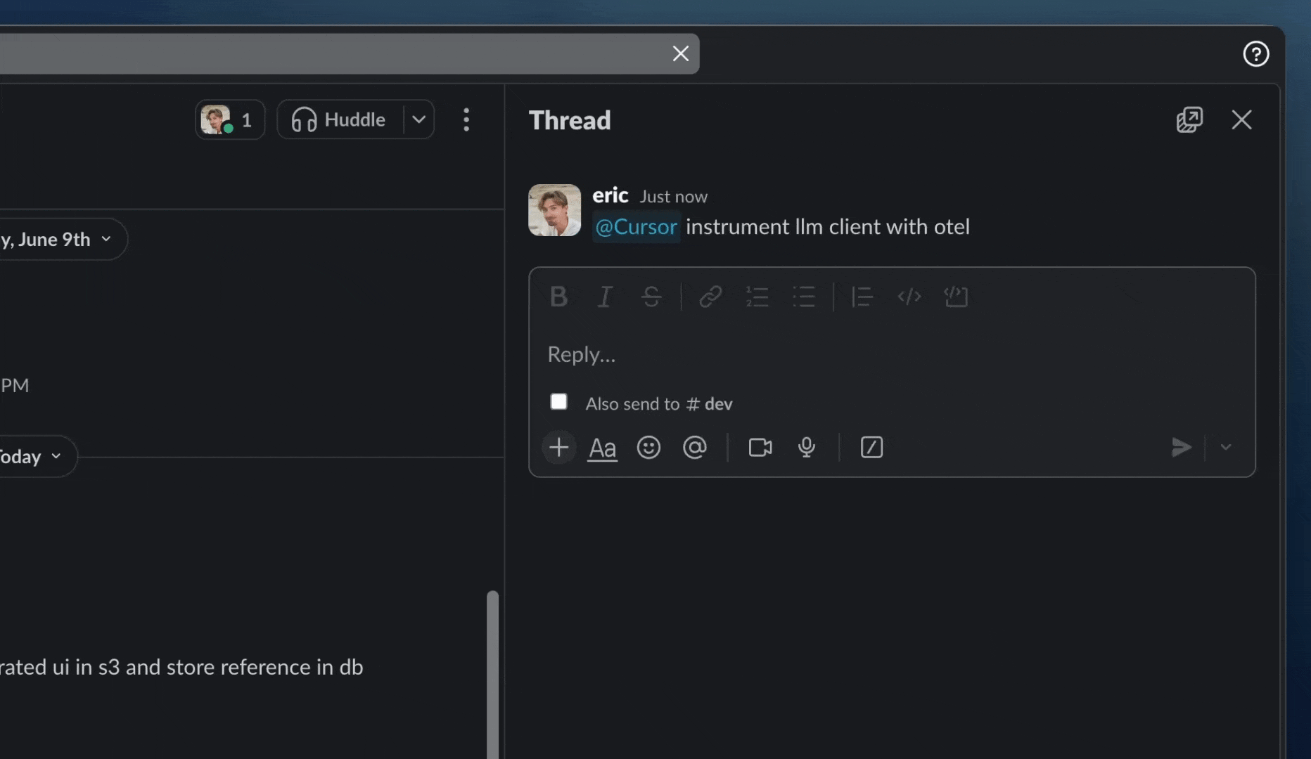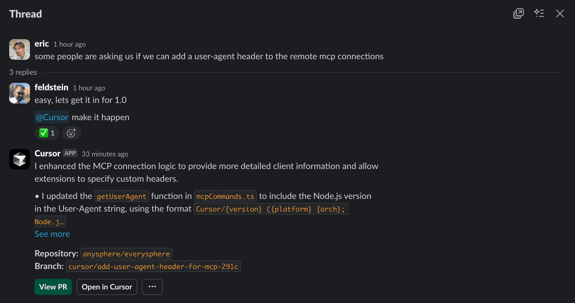 Cursor reads the entire Slack thread before starting, so Background Agents understand the full context when you reference previous discussions or issues.